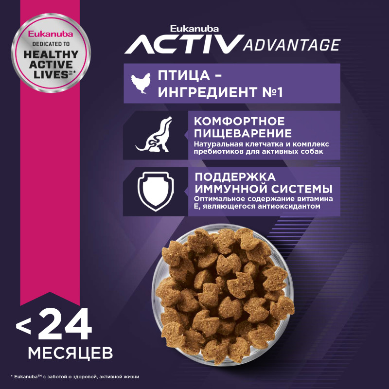 Eukanuba Puppy Large Breed (Птица) - корм сухой полнорационный для щенков крупных пород (вес взрослой собаки от 25 до 45 кг) в возрасте от 1 до 15 месяцев и очень крупных пород (вес взрослой собаки более 45 кг) в возрасте от 1 до 24 месяцев с птицей.